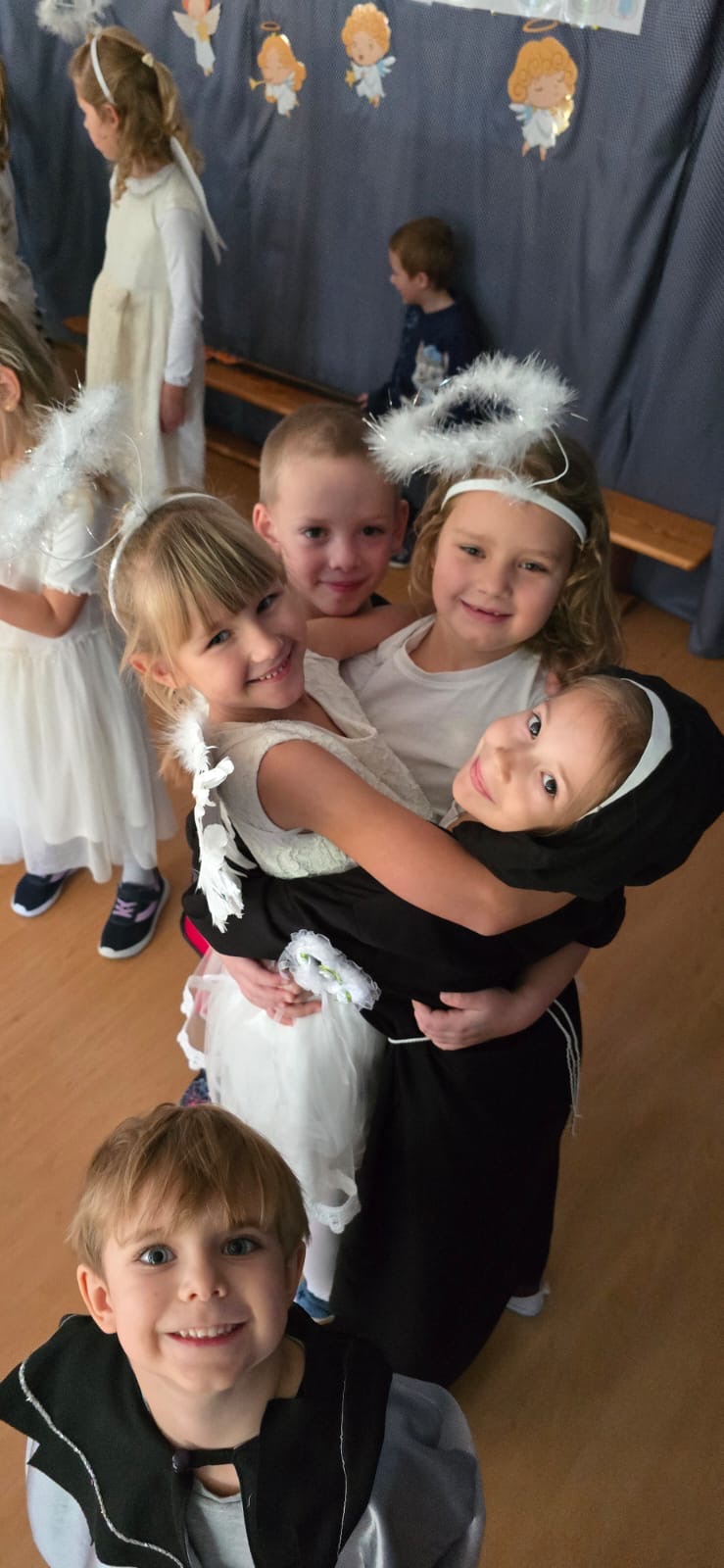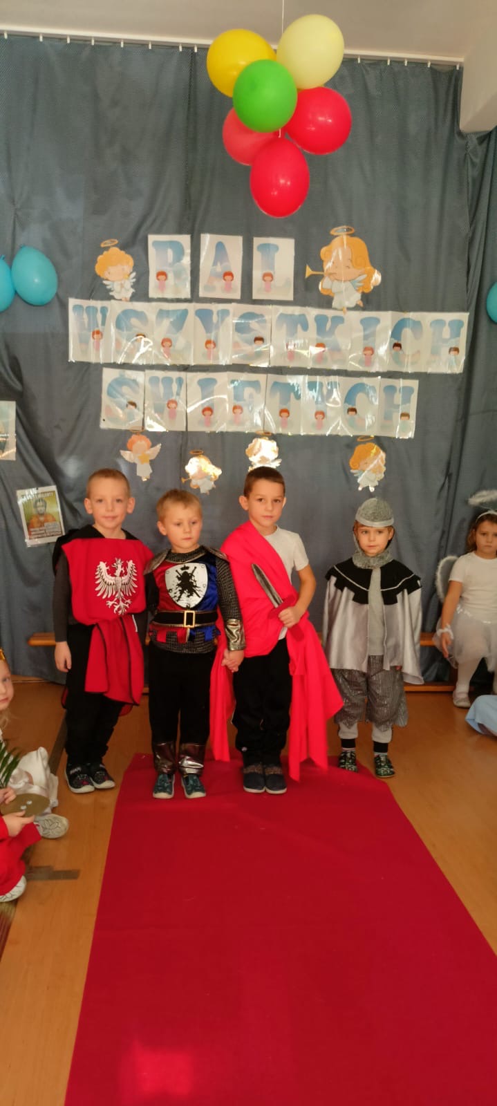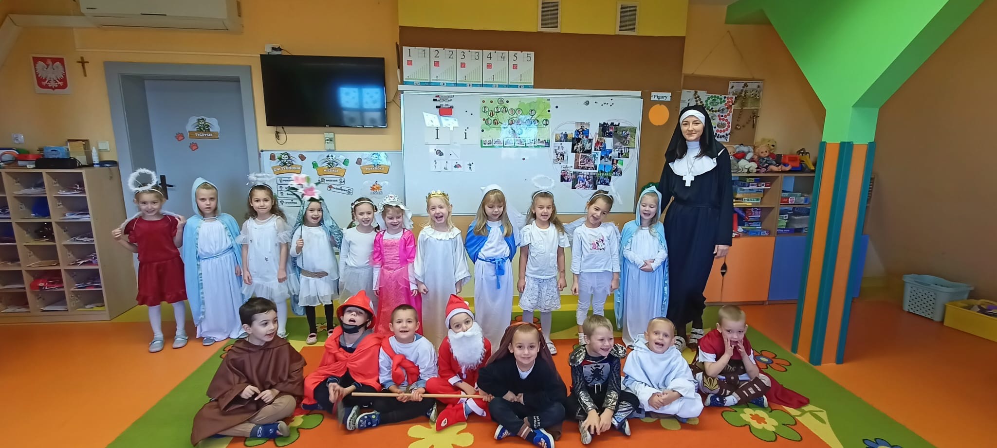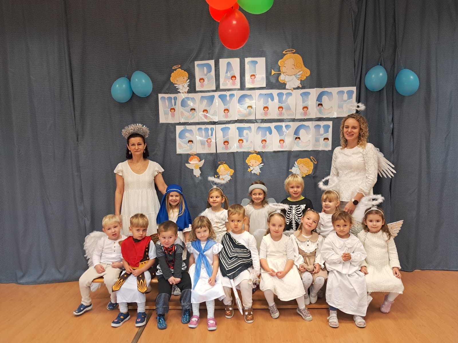 Tego dnia nasze przedszkolaki przyszły przebrane za swoich ulubionych świętych i aniołów. Na dzieci czekało wiele radości, wspólne tańce oraz wyjątkowy pokaz strojów na czerwonym dywanie, podczas którego każde dziecko mogło z dumą zaprezentować swój kostium. Bal przebiegł w atmosferze radości i wspólnego świętowania dobra. Dziękujemy pani Eli za przygotowanie tego pięknego wydarzenia oraz Rodzicom za pomoc w przygotowaniu strojów.