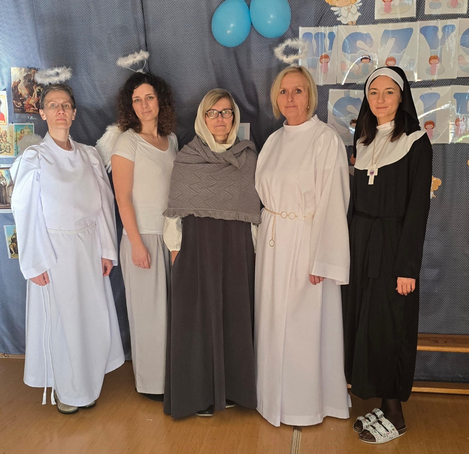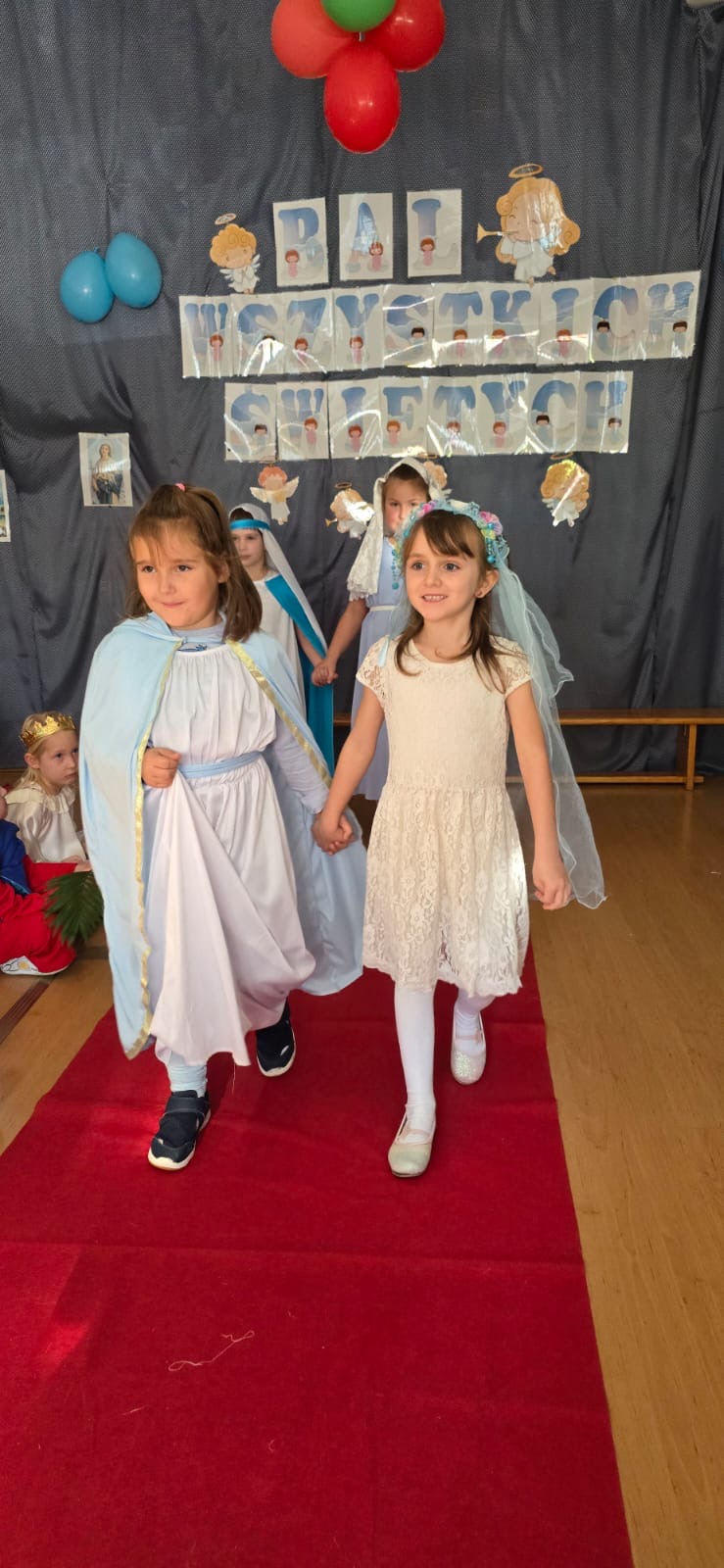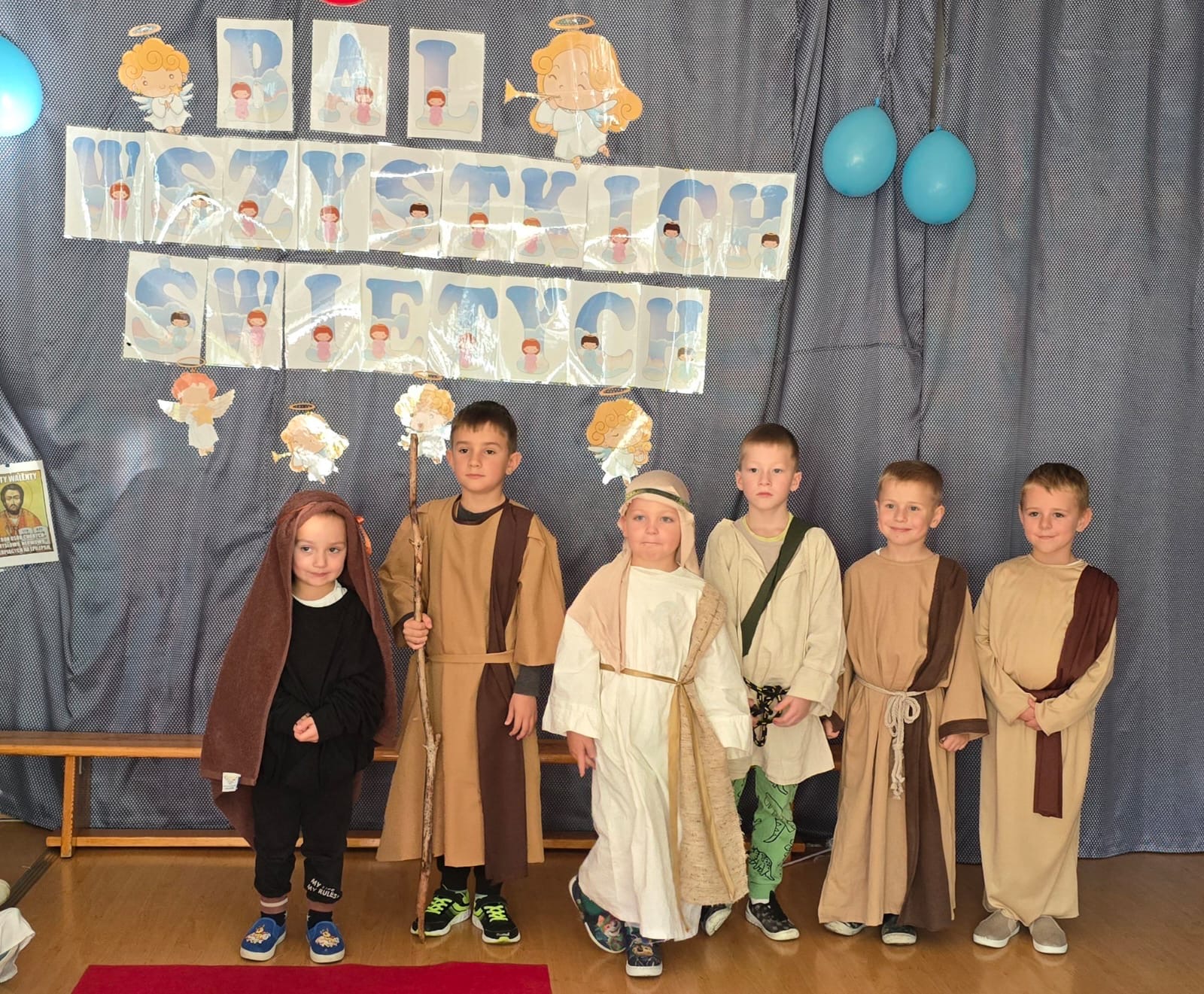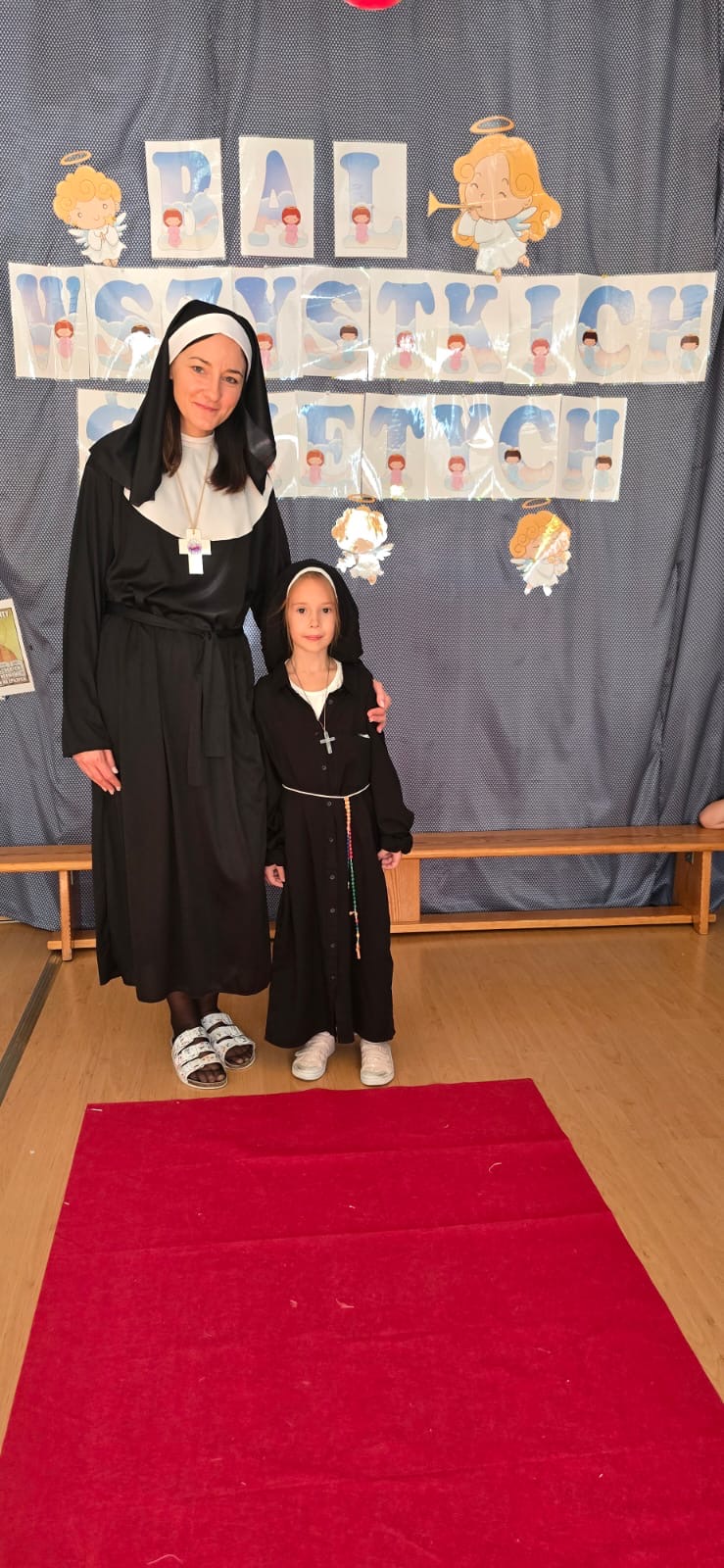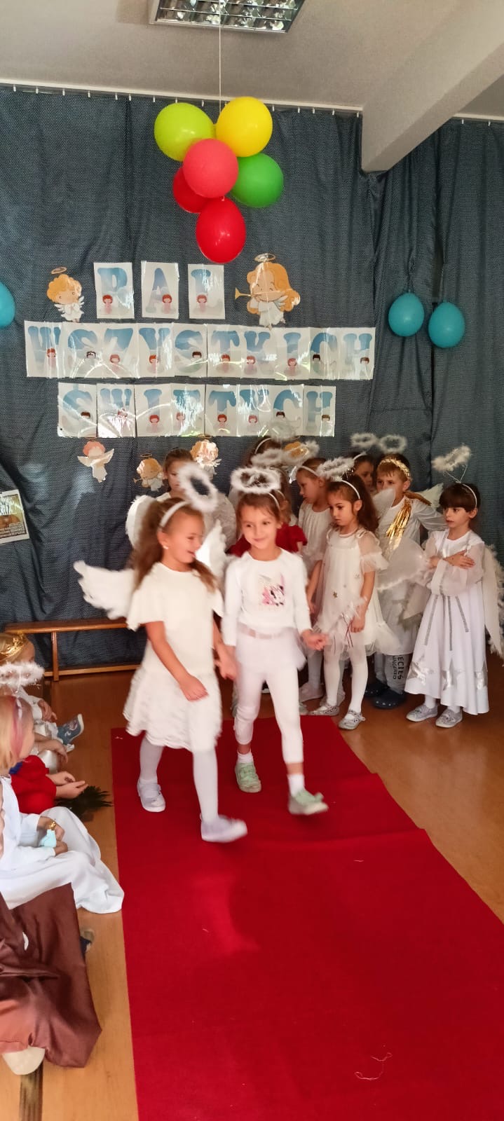 Tego dnia nasze przedszkolaki przyszły przebrane za swoich ulubionych świętych i aniołów. Na dzieci czekało wiele radości, wspólne tańce oraz wyjątkowy pokaz strojów na czerwonym dywanie, podczas którego każde dziecko mogło z dumą zaprezentować swój kostium. Bal przebiegł w atmosferze radości i wspólnego świętowania dobra. Dziękujemy pani Eli za przygotowanie tego pięknego wydarzenia oraz Rodzicom za pomoc w przygotowaniu strojów.