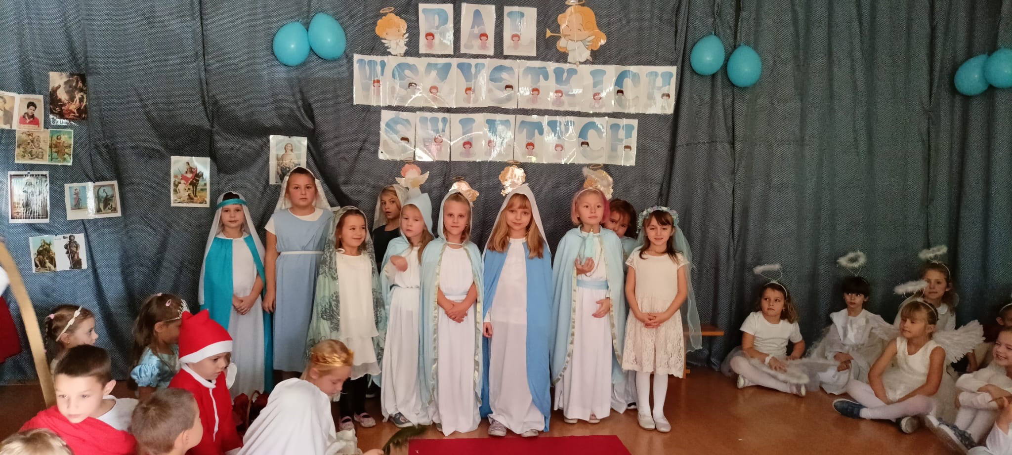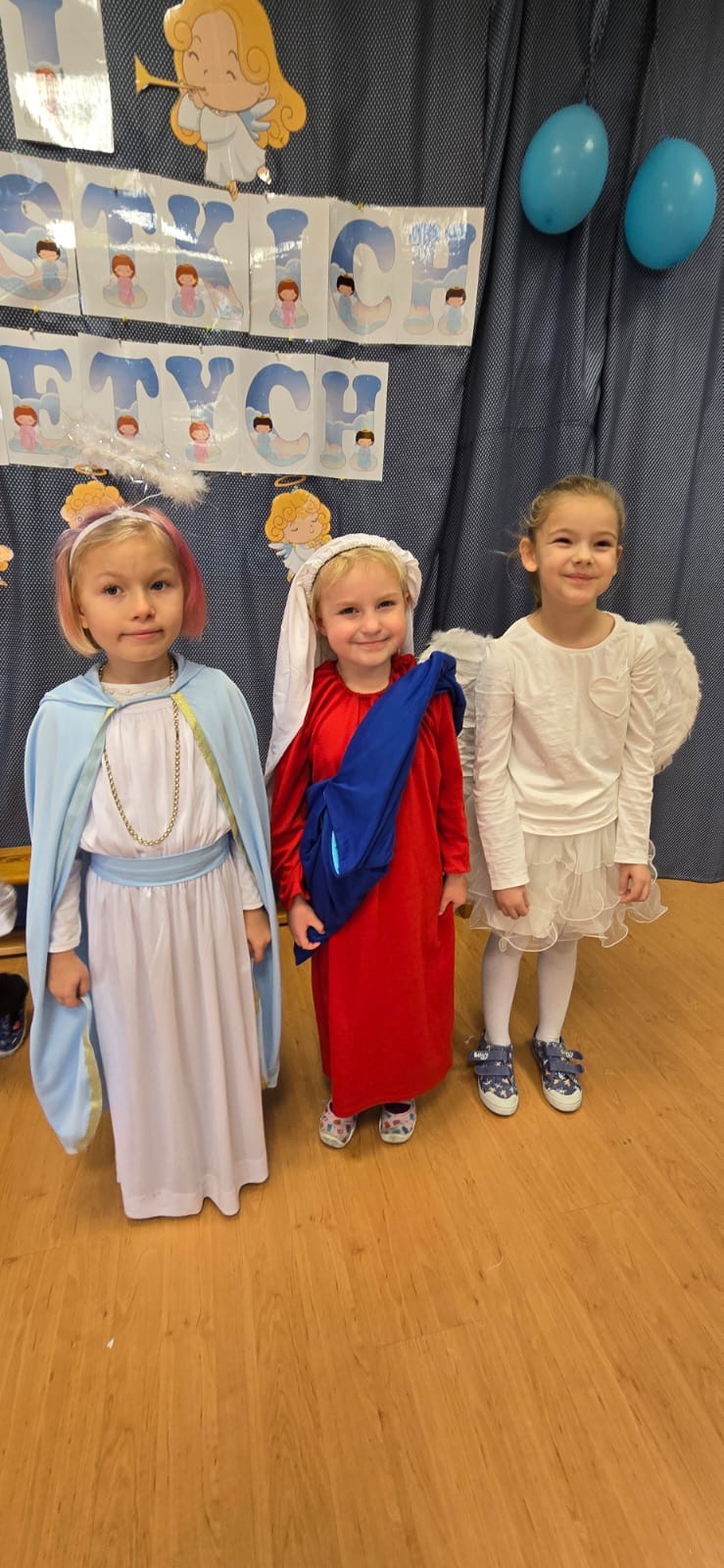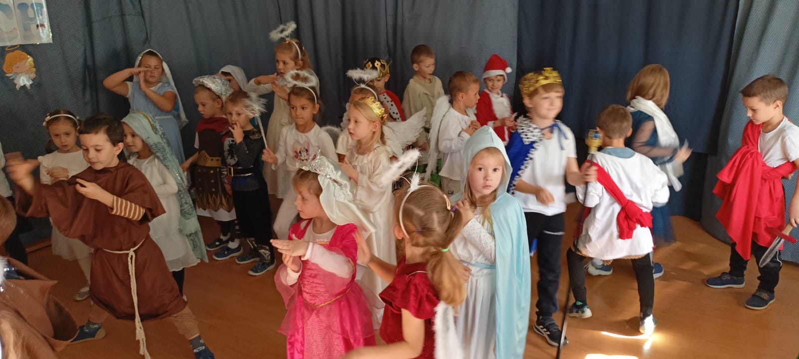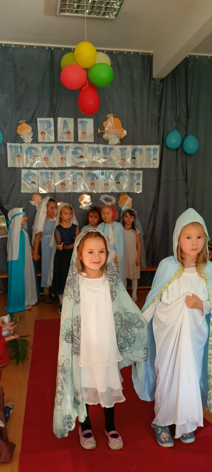 Tego dnia nasze przedszkolaki przyszły przebrane za swoich ulubionych świętych i aniołów. Na dzieci czekało wiele radości, wspólne tańce oraz wyjątkowy pokaz strojów na czerwonym dywanie, podczas którego każde dziecko mogło z dumą zaprezentować swój kostium. Bal przebiegł w atmosferze radości i wspólnego świętowania dobra. Dziękujemy pani Eli za przygotowanie tego pięknego wydarzenia oraz Rodzicom za pomoc w przygotowaniu strojów.