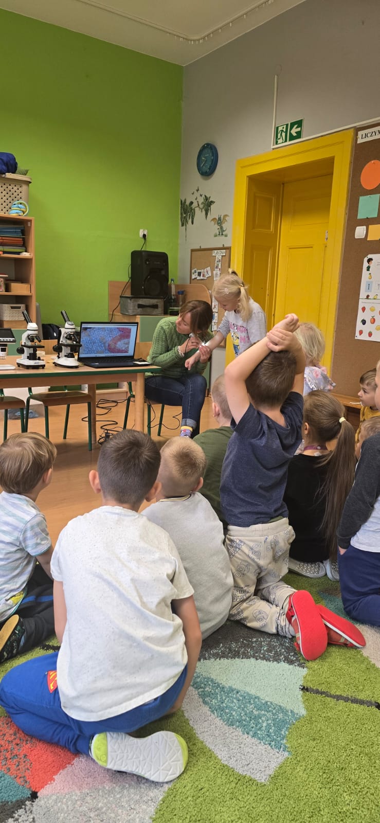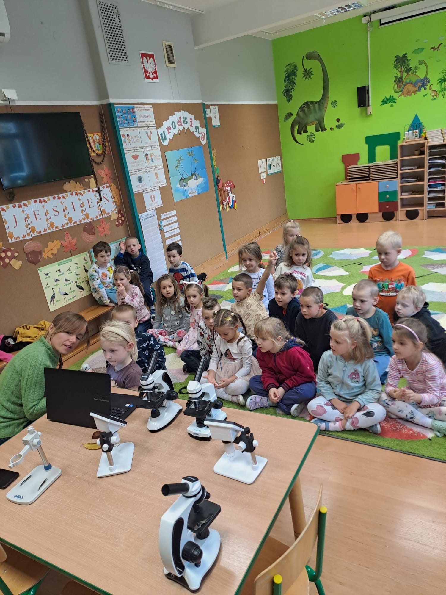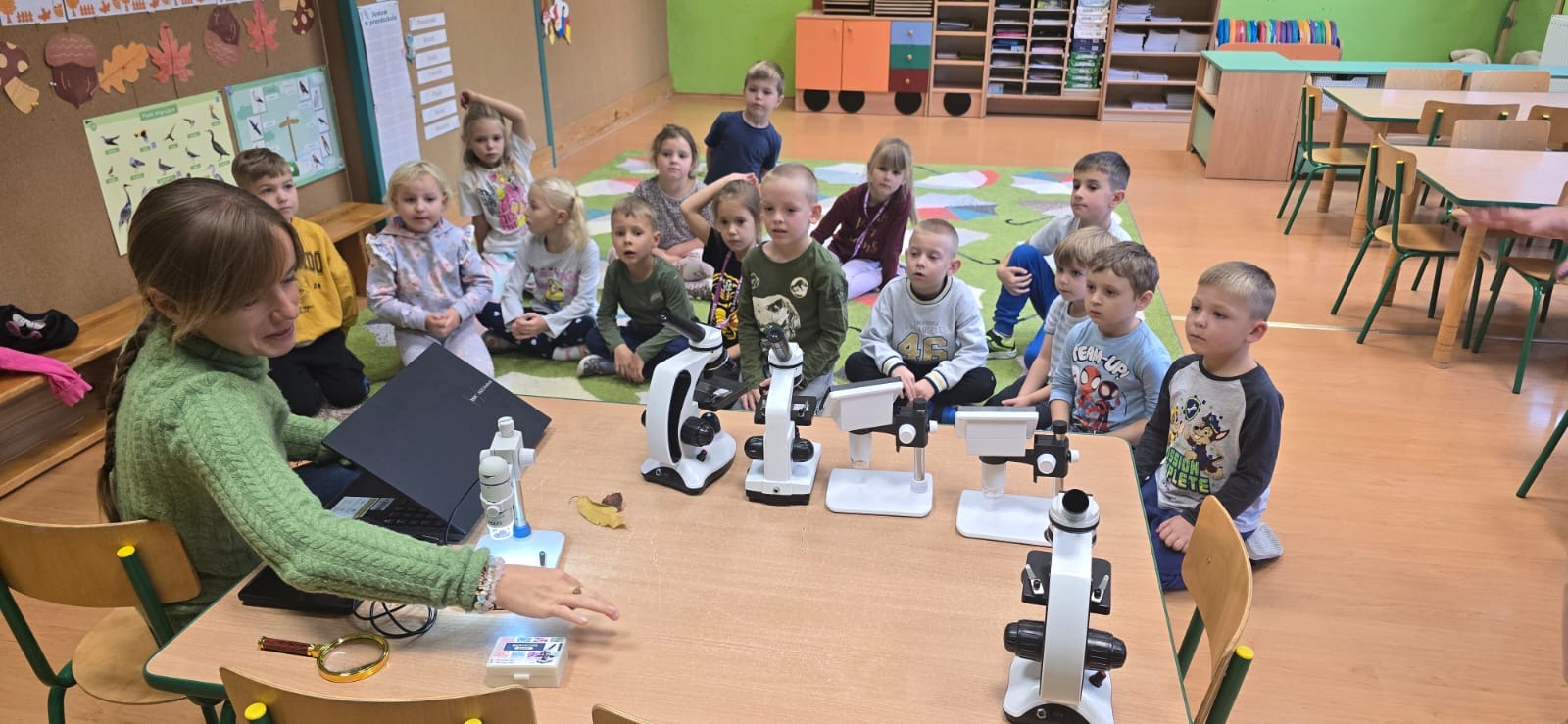 Zajęcia wzbudziły ogromne zainteresowanie i zachwyt wśród przedszkolaków. Mali odkrywcy z uwagą słuchali prowadzącego, zadawali pytania i z ciekawością odkrywali tajemnice mikroskopowego świata.