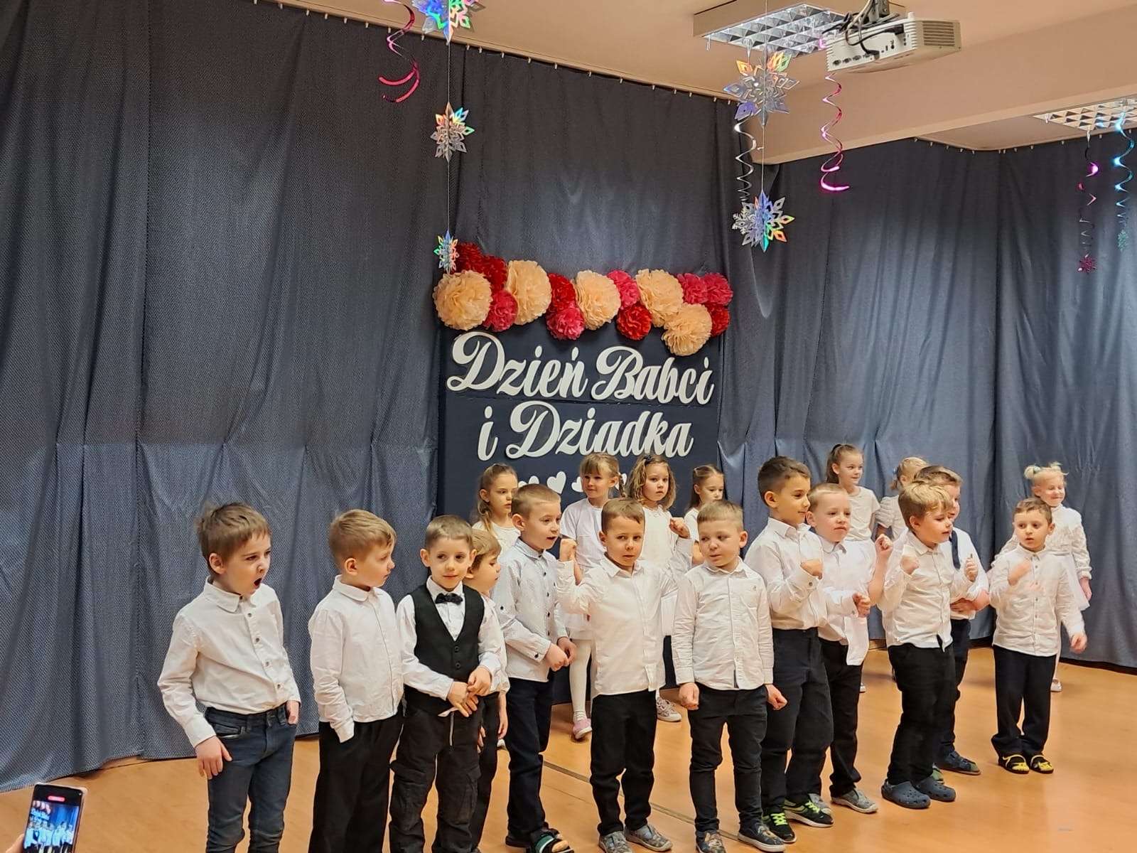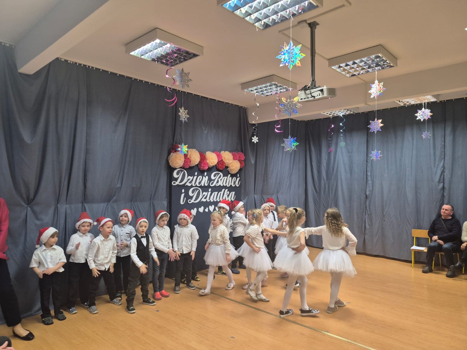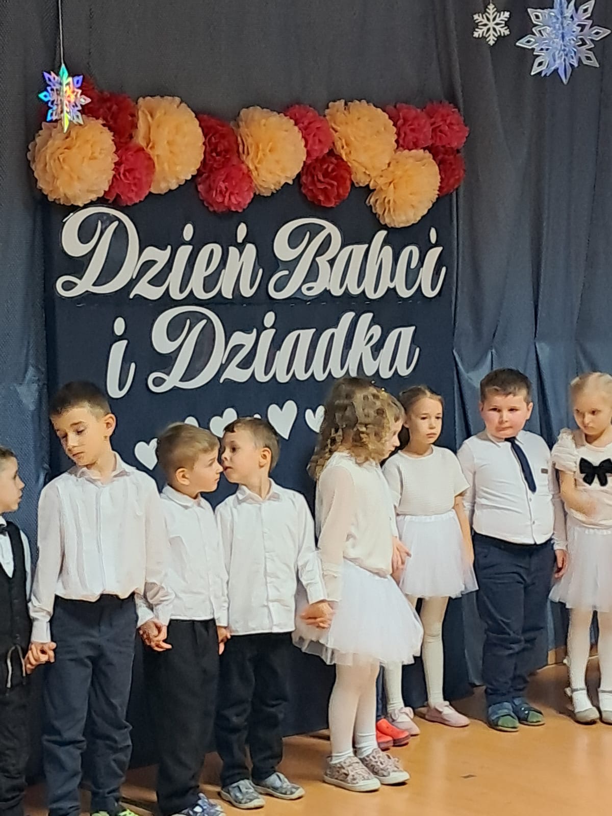 Dzieci zaprezentowały przygotowaną z ogromnym zaangażowaniem inscenizację z okazji Dnia Babci i Dziadka, sprawiając seniorom wiele radości i wzruszeń. Występ był pięknym wyrazem szacunku, wdzięczności oraz pamięci o osobach starszych.
