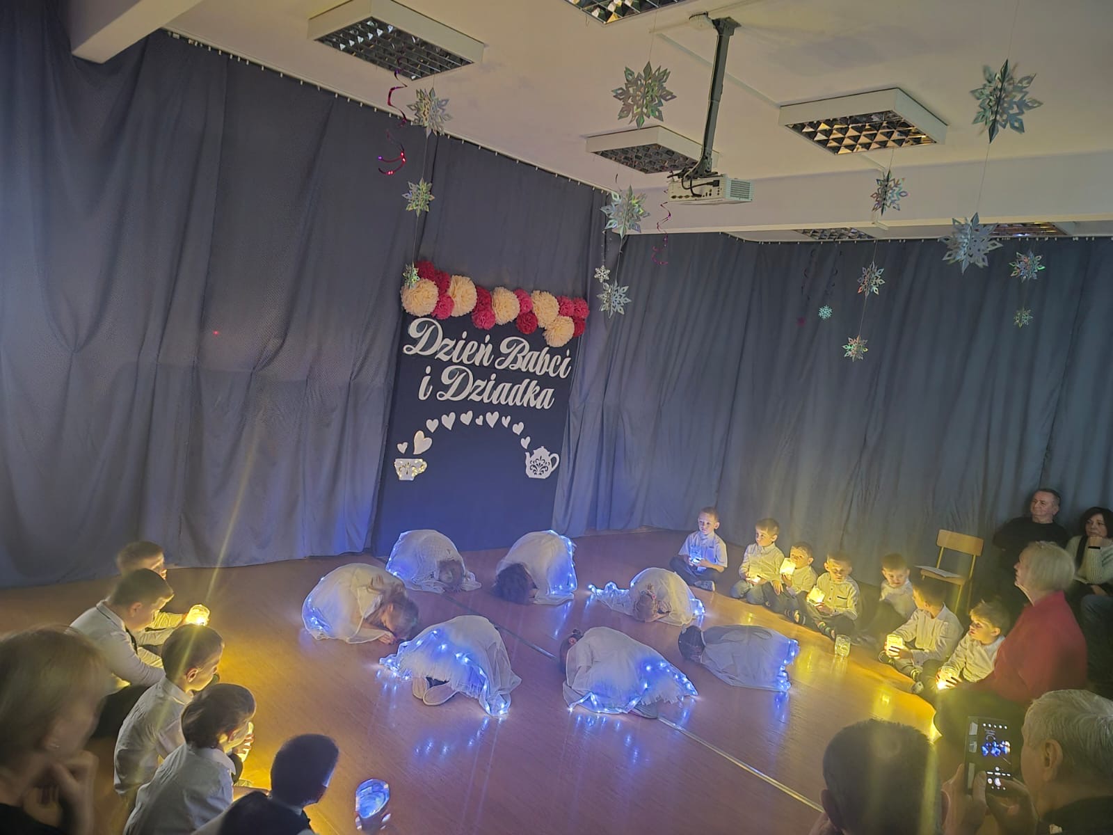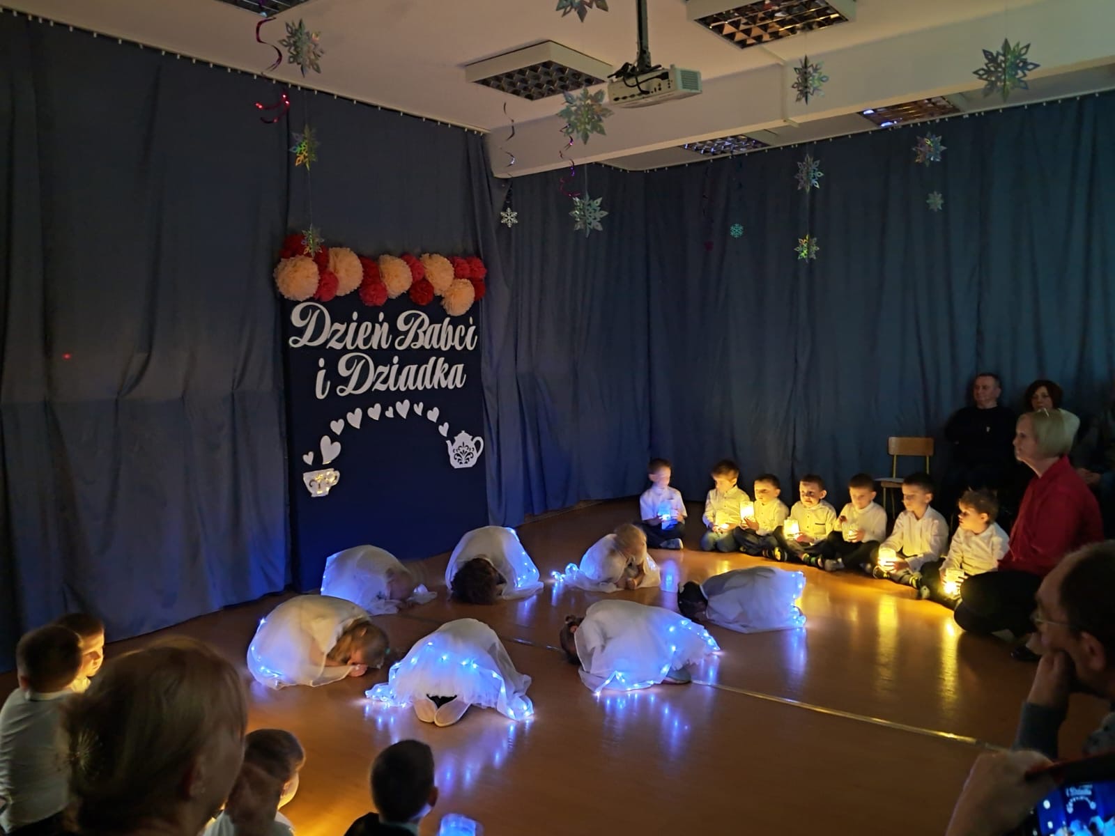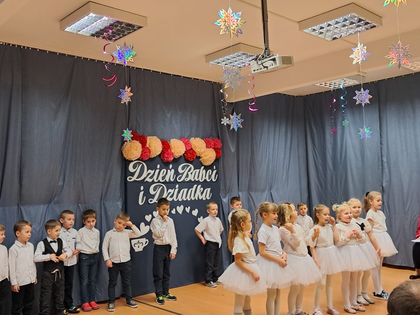 Dzieci zaprezentowały przygotowaną z ogromnym zaangażowaniem inscenizację z okazji Dnia Babci i Dziadka, sprawiając seniorom wiele radości i wzruszeń. Występ był pięknym wyrazem szacunku, wdzięczności oraz pamięci o osobach starszych.