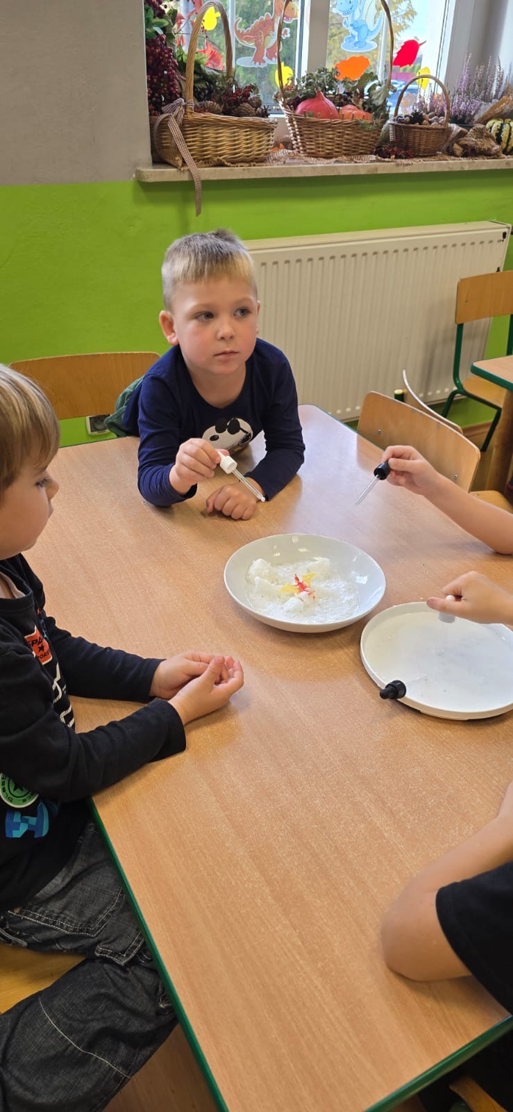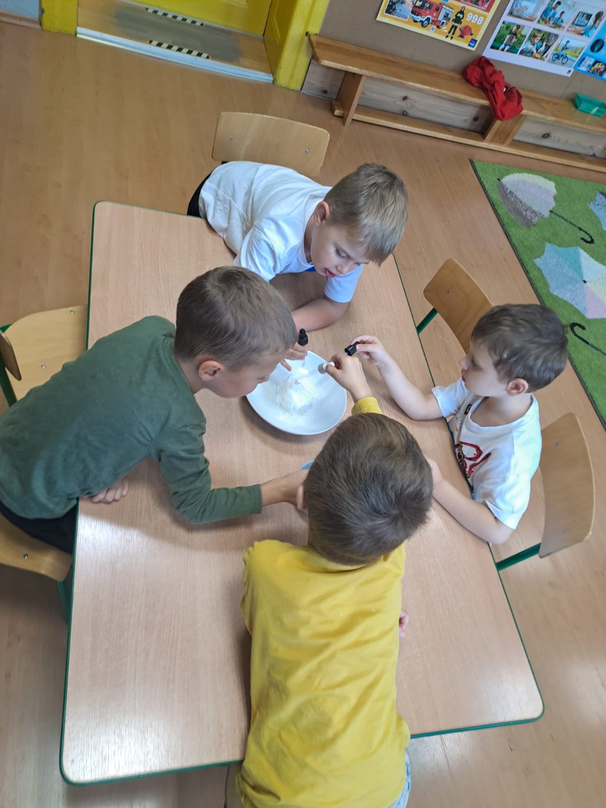 Eksperyment " Deszczowa chmura" i zabawa sensoryczna z pianką do golenia w grupie Tygryski!!!