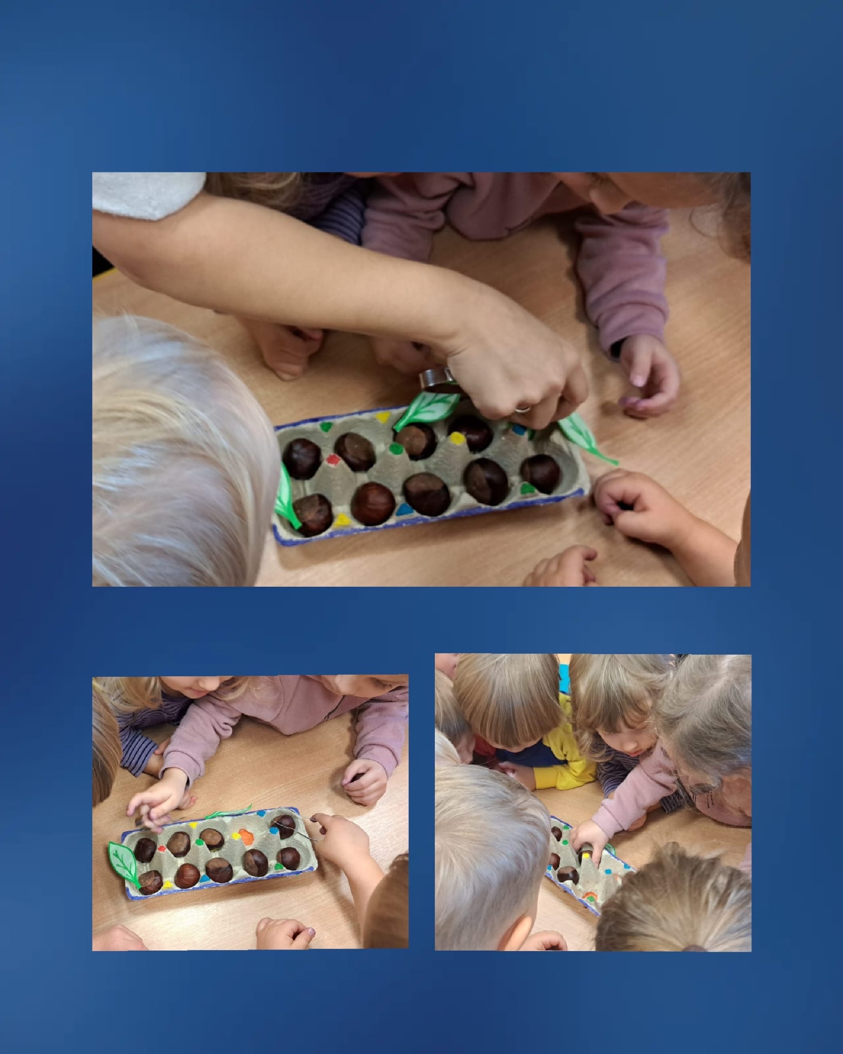 Podziwialiśmy piękne barwy liści, szukaliśmy kasztanów, żołędzi i innych skarbów jesieni. Dzieci z radością obserwowały zmiany w przyrodzie, rozpoznawały drzewa i zbierały materiał do naszych jesiennych prac plastycznych.