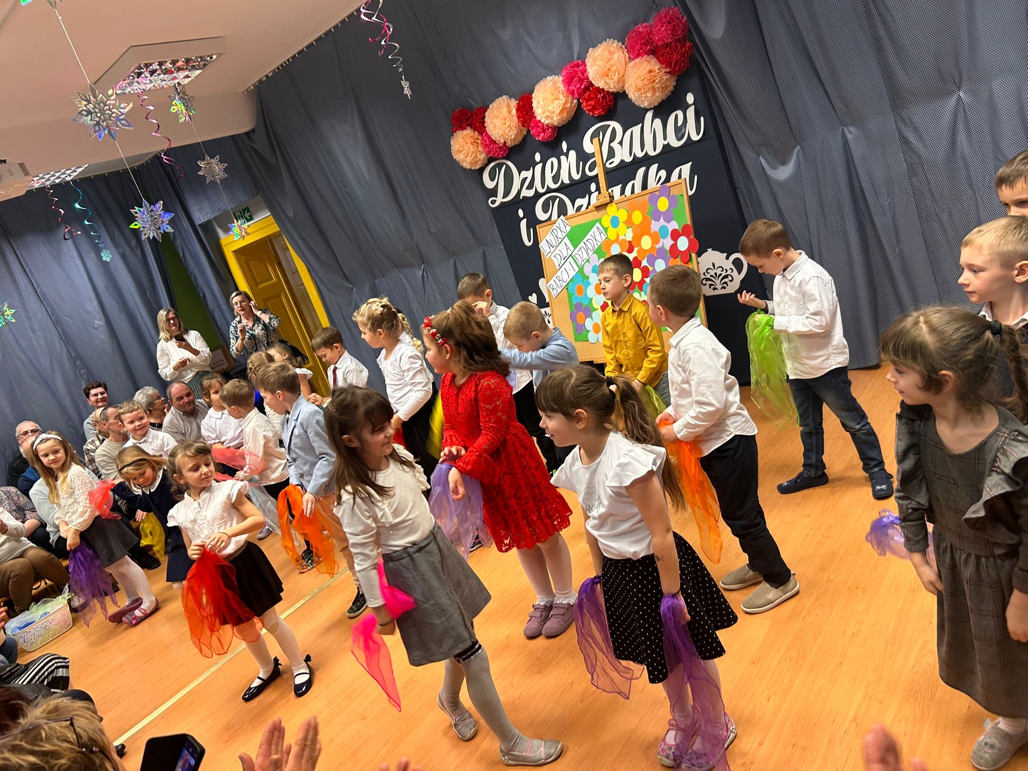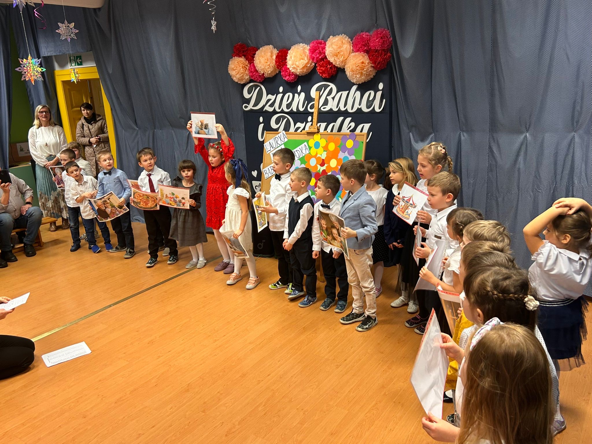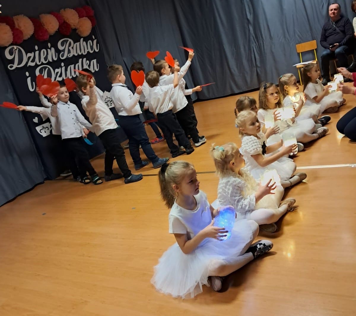 Przedszkolaki z ogromnym zaangażowaniem zaprezentowały przygotowane występy artystyczne – były wiersze, piosenki oraz tańce, które wywołały wiele uśmiechów i wzruszeń wśród zaproszonych gości. Dzieci wręczyły również własnoręcznie wykonane upominki, składając swoim Babciom i Dziadkom serdeczne życzenia zdrowia, radości i długich lat życia.