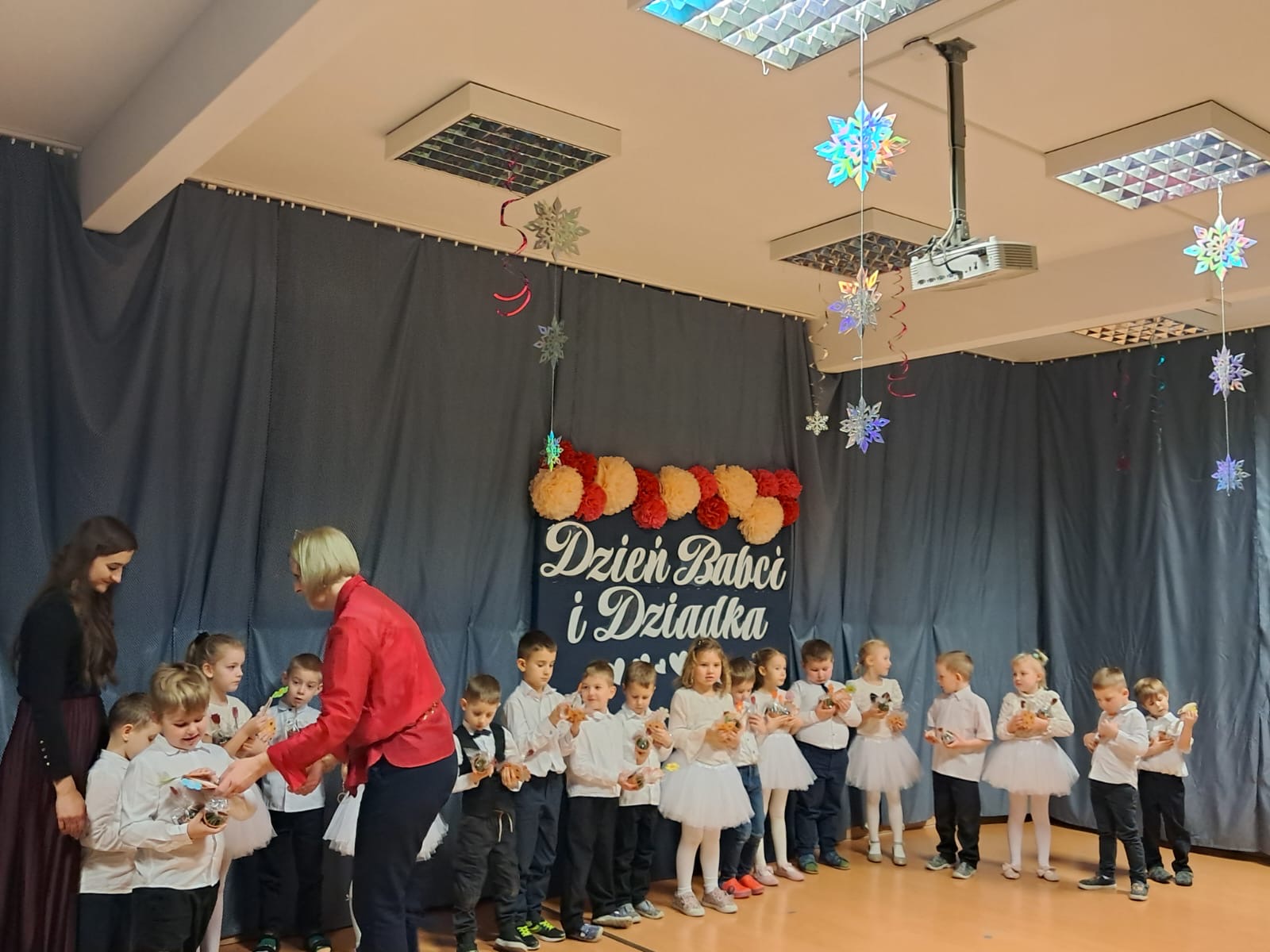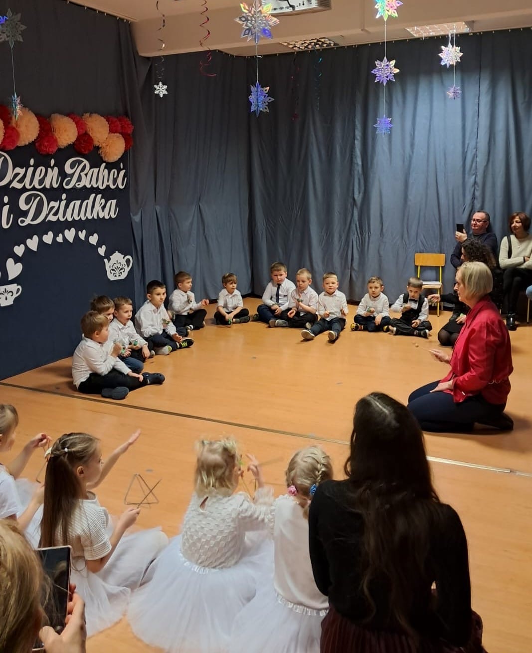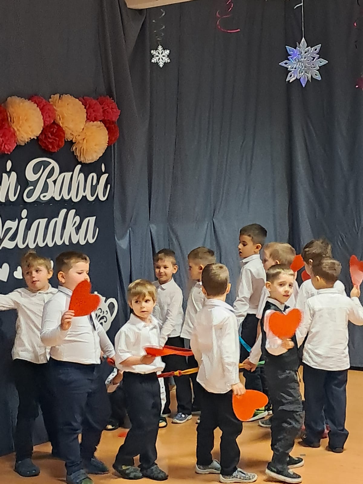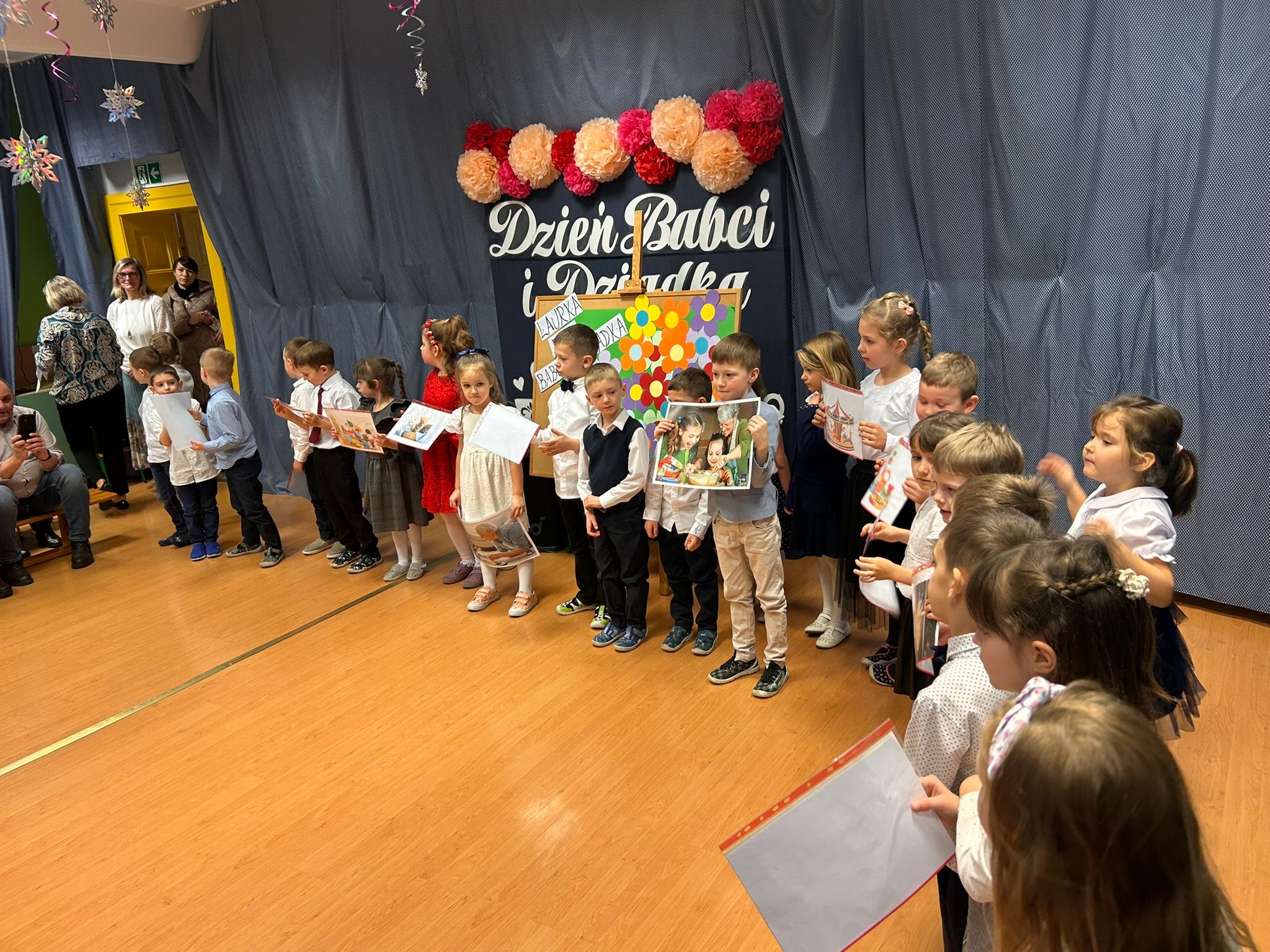 Przedszkolaki z ogromnym zaangażowaniem zaprezentowały przygotowane występy artystyczne – były wiersze, piosenki oraz tańce, które wywołały wiele uśmiechów i wzruszeń wśród zaproszonych gości. Dzieci wręczyły również własnoręcznie wykonane upominki, składając swoim Babciom i Dziadkom serdeczne życzenia zdrowia, radości i długich lat życia.