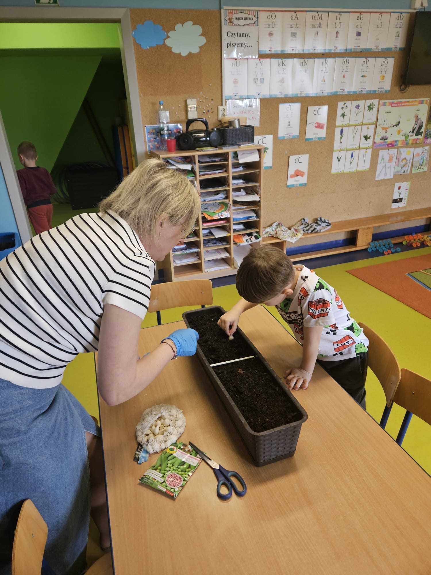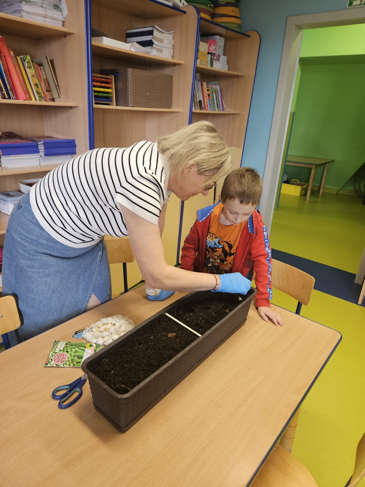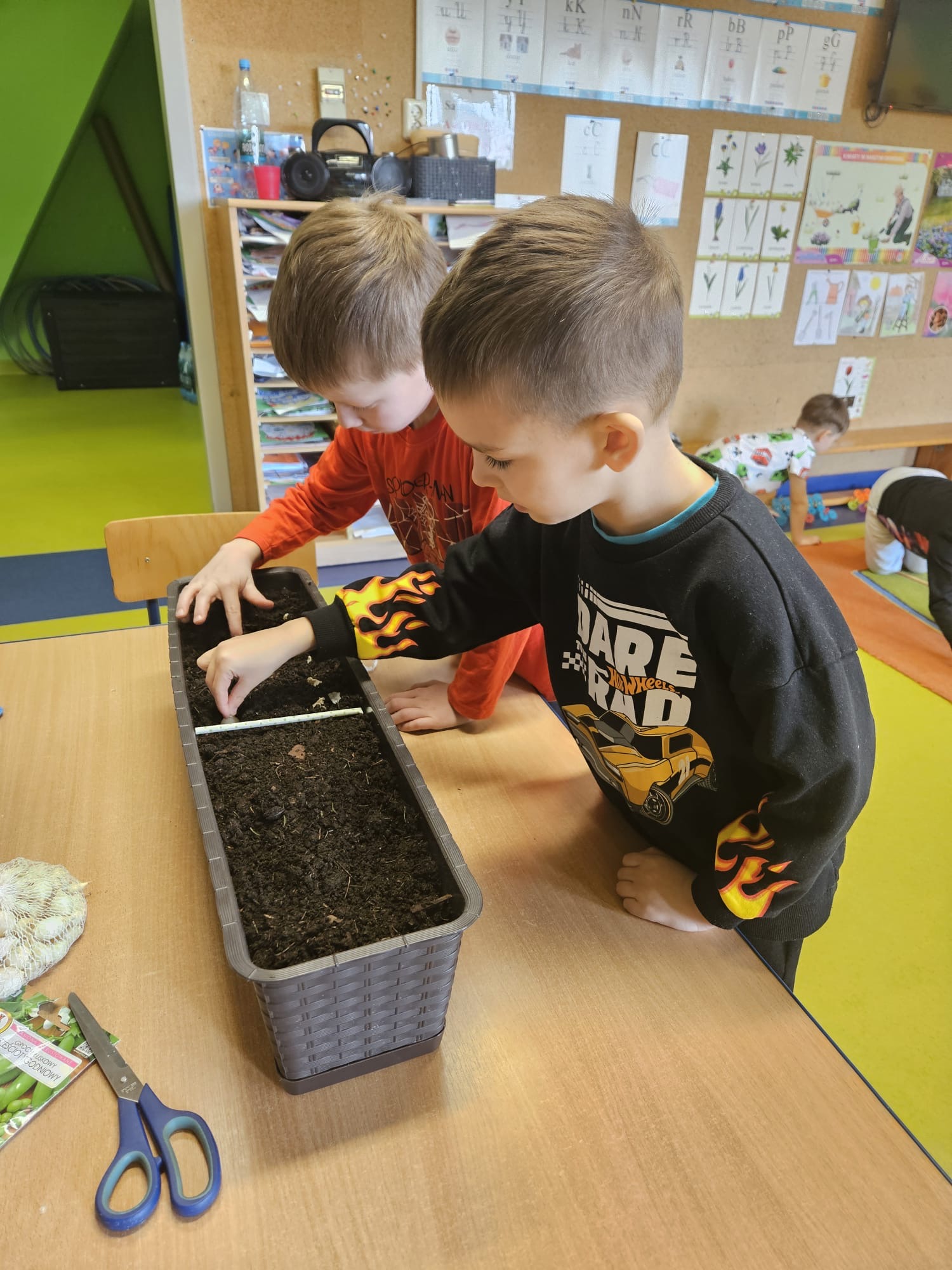 DINUSIE przygotowały i zasiały rzodkiewkę, pietruszkę , groch, koperek w swoim ogródku.