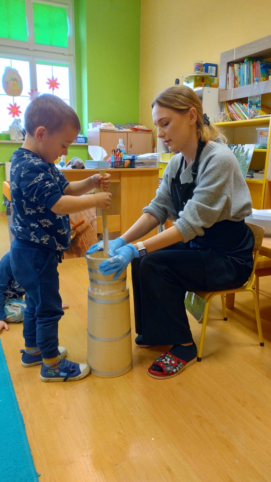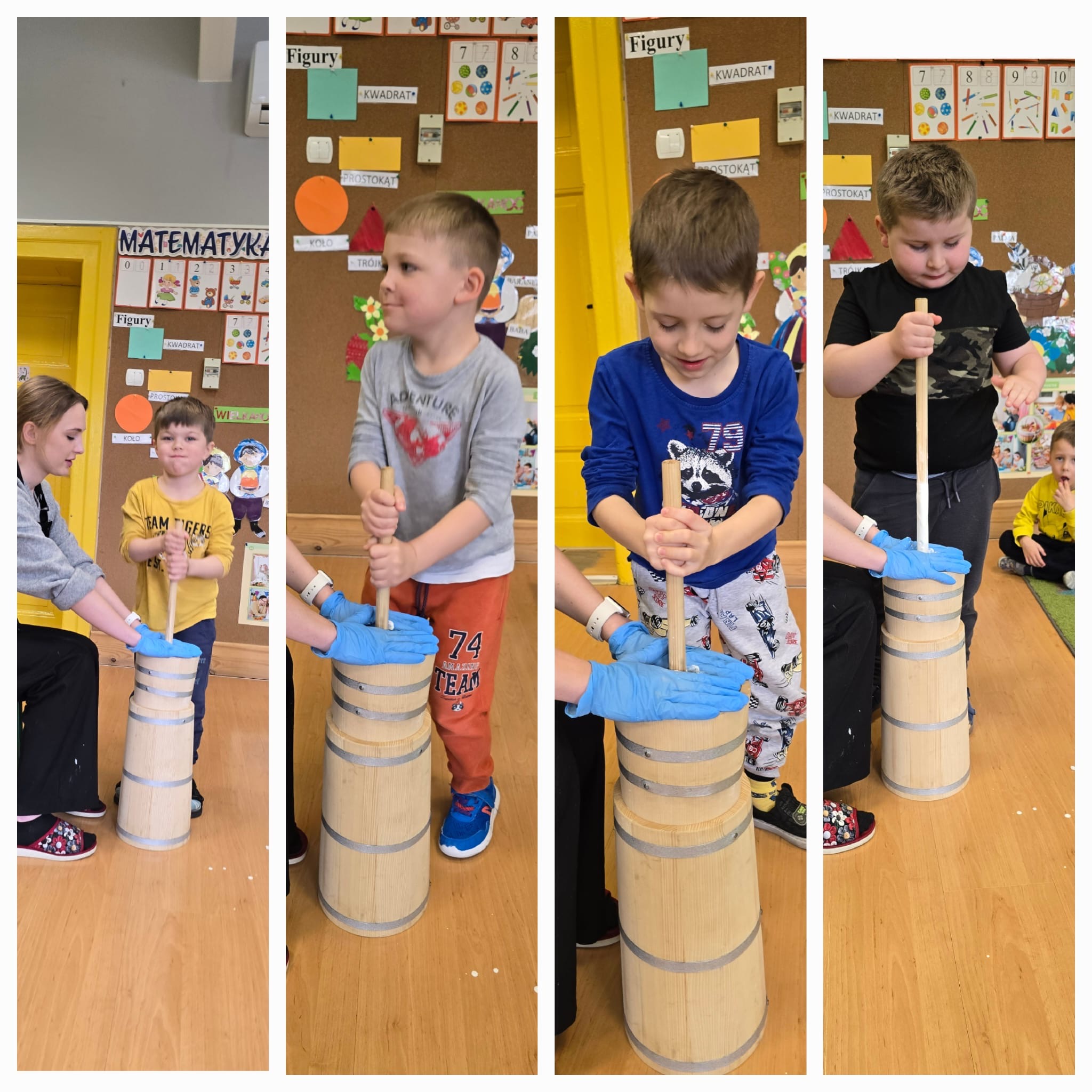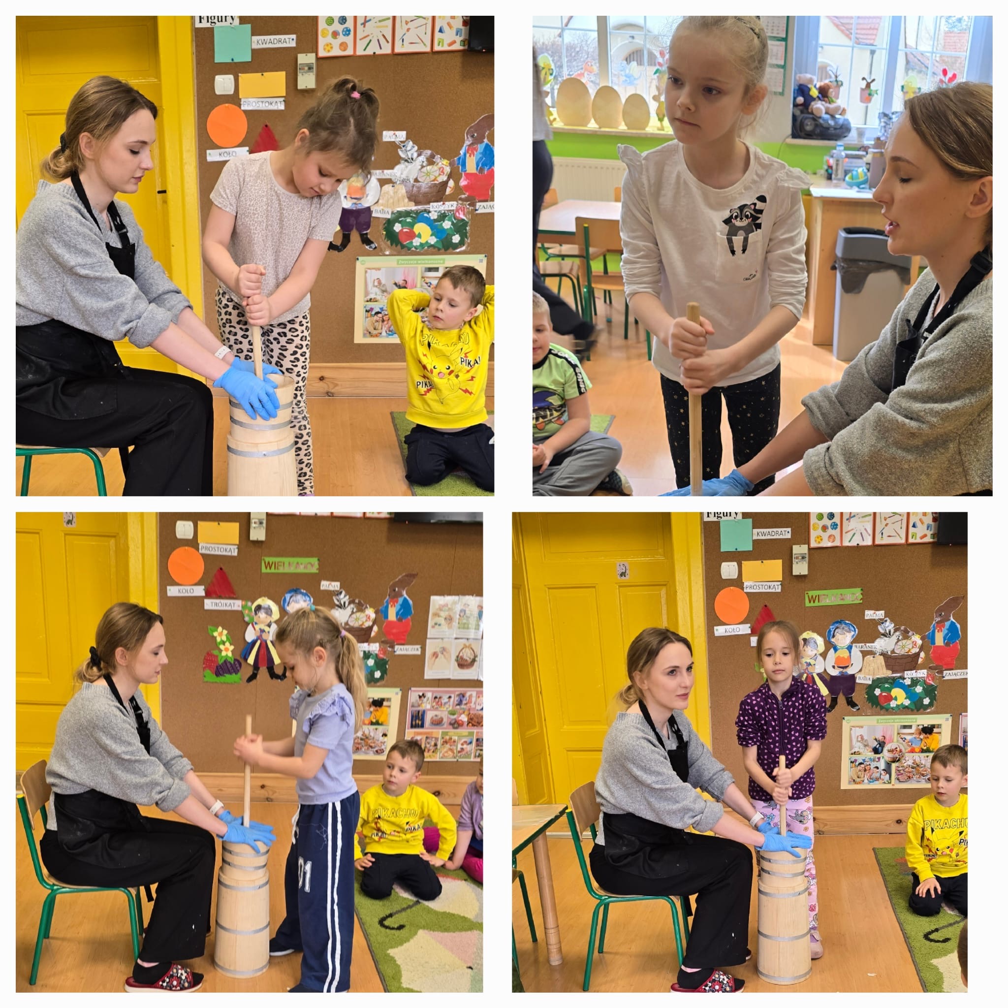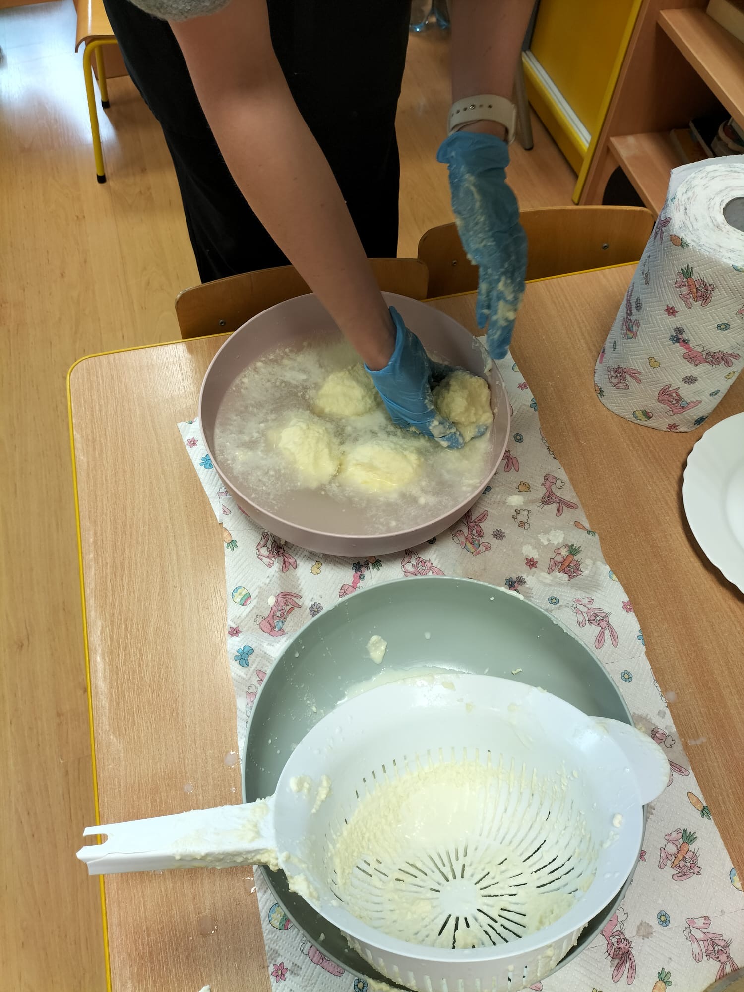 W dniu dzisiejszym w naszym przedszkolu odbyły się warsztaty maślane. Dzieci ze wszystkich grup miały okazję poznać proces powstawania masła – od śmietany aż po gotowy produkt. Podczas zajęć przedszkolaki z dużym zaangażowaniem obserwowały kolejne etapy, a następnie samodzielnie wykonywały masło. Warsztaty dostarczyły dzieciom wielu wrażeń oraz cennej wiedzy poprzez bezpośrednie doświadczenie.