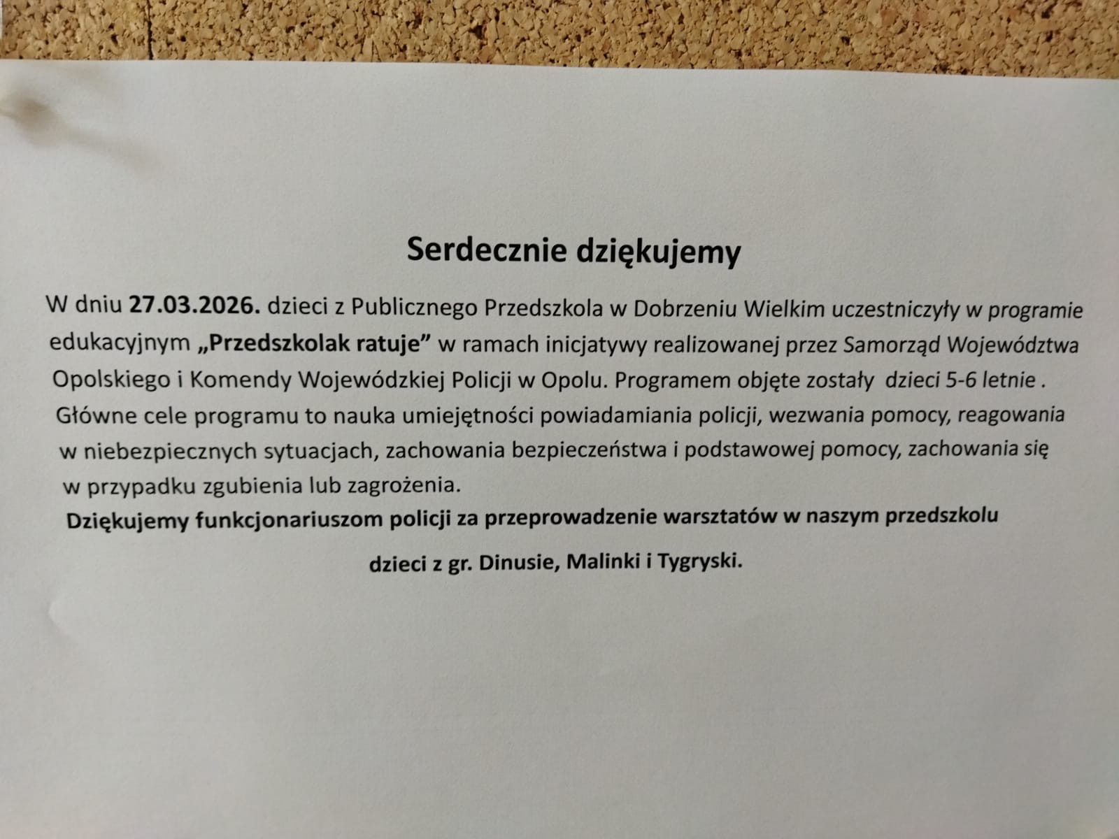 LISTA ZAKWALFIKOWANYCH DZIECI NA ROK SZKOLNY 2026/2027 ZNAJDUJE SIĘ NA TABLICY OGŁOSZEŃ W HOLU PRZEDSZKOLA.