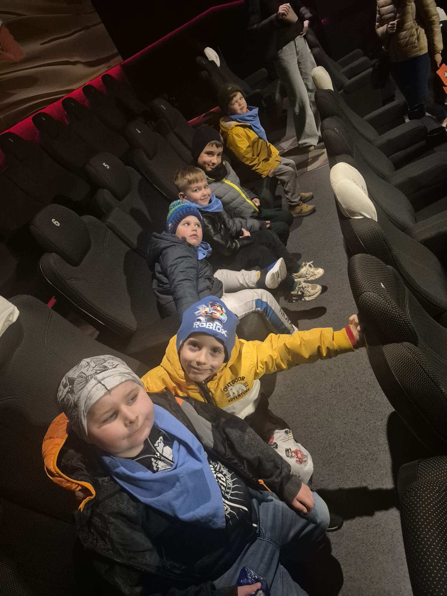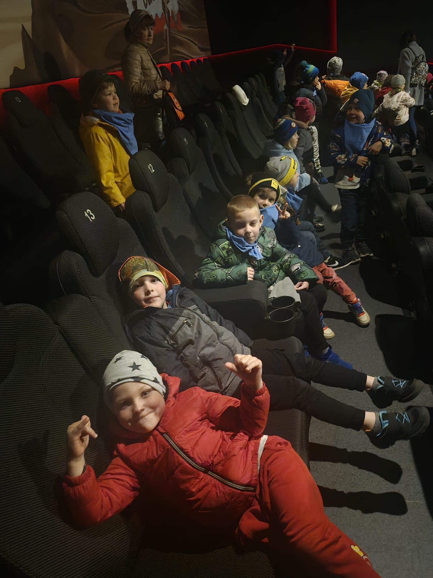 W dniu 30.03.2026r., grupy Tygryski, Dinusie i Malinki pojechały do kina na bajkę " Hopnięci".